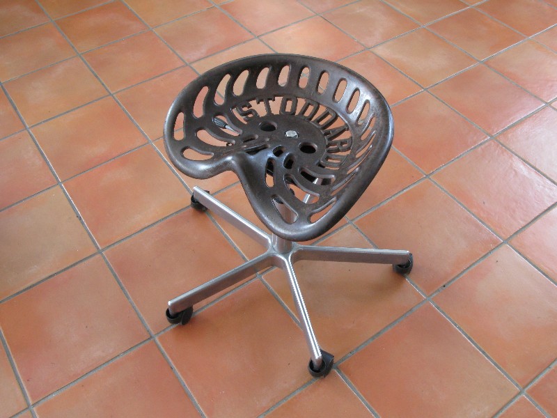 This 1905 cast iron seat mounted to the newer office chair base with quick height adjust is a dream to sit on. I can sit on it staring at the wall for hours and not notice even a bit of discomfort. This works great when I am working long hours on a drawing.
